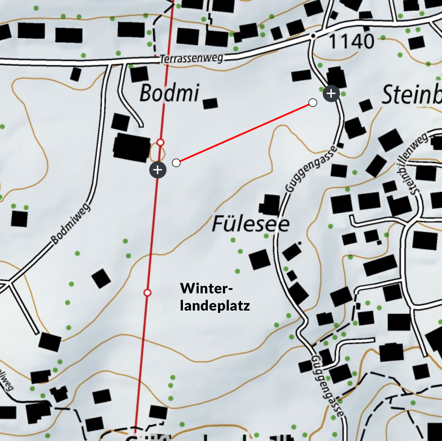 Wichtige Information betreffend Landeplatz Bodmi: Ab 27. Januar 2026 ist nördlich des Landeplatzes Bodmi wieder ein Tyrolienne-Seil gespannt. Dieses bleibt bis Ende Winter dort. Bei Nord-Anflügen der Bodmi bitte unbedingt Tyrolienne-Seil beachten.